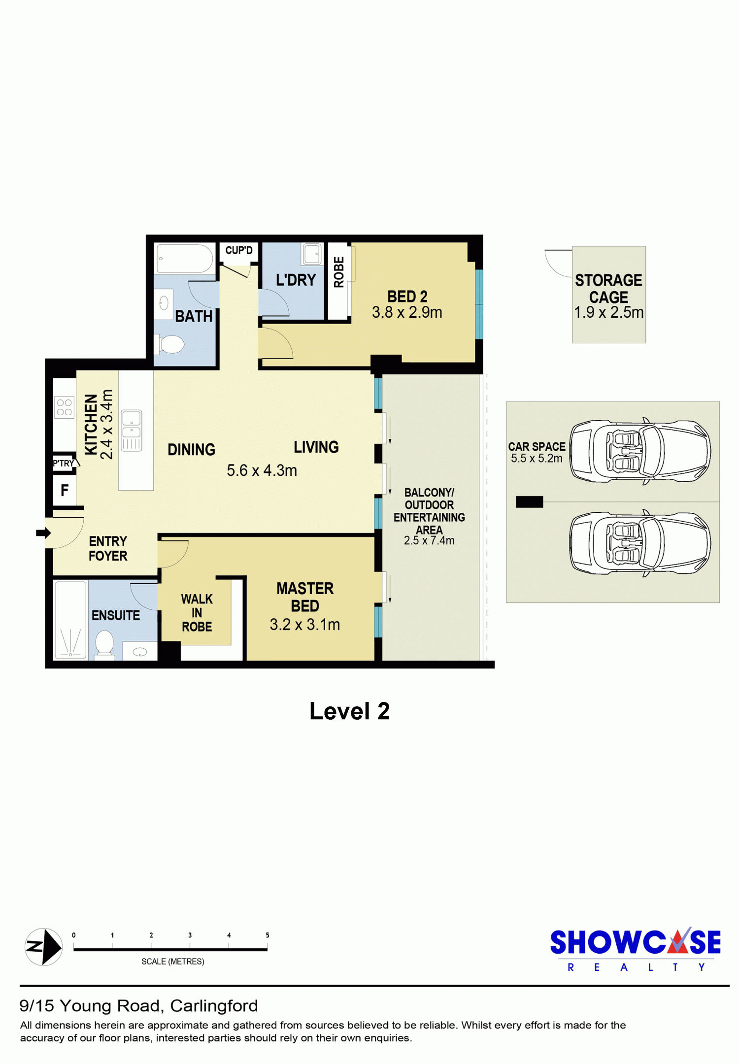 - 2 Large side by side car spaces plus lock up storage cage